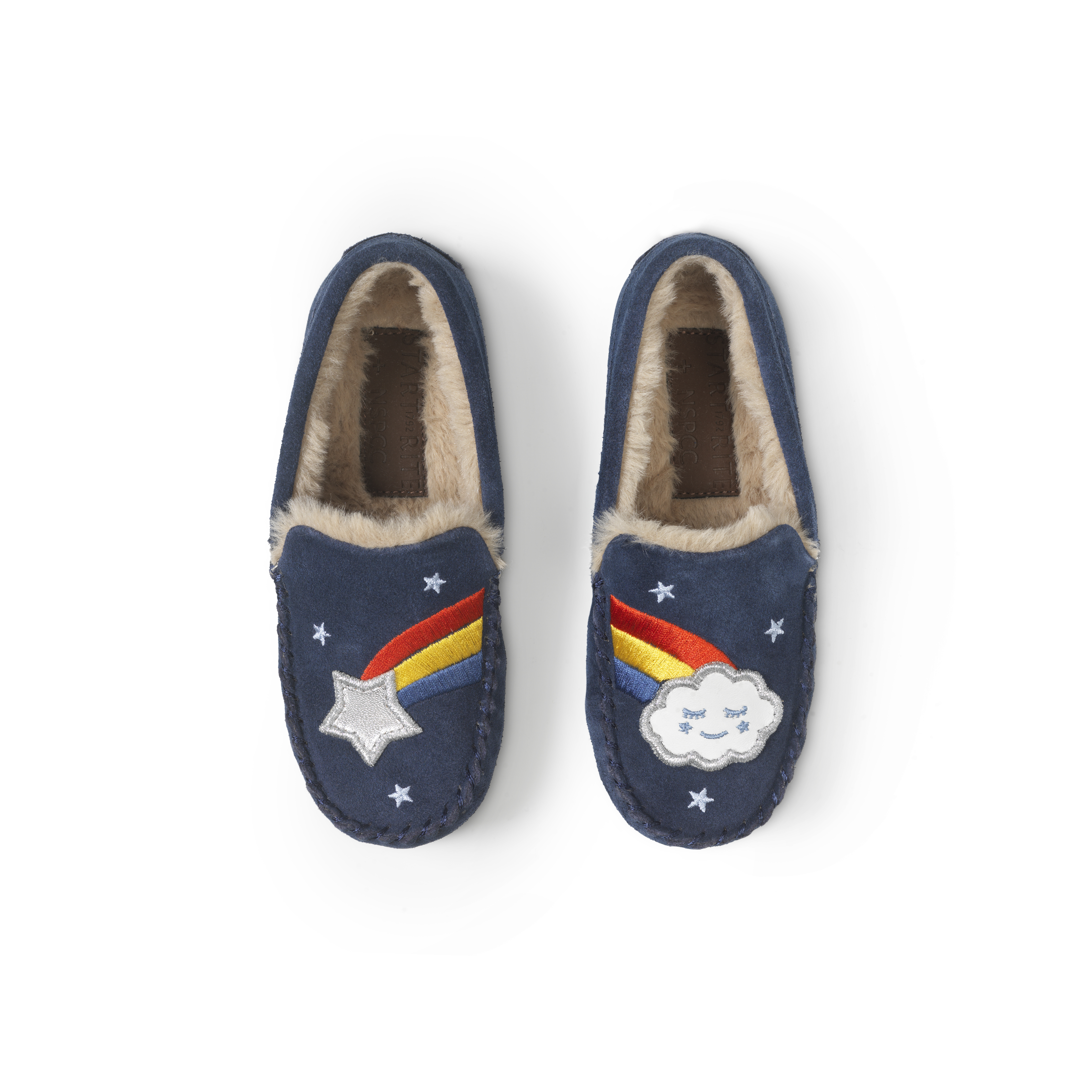 Snuggle Slipper: Navy blue suede NSPCC rainbow slip-on slippers from Start-Rite